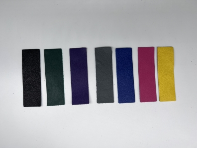 Leather wrapped chain collar with a square lock. Available in Black, Blue, Red and Yellow. Size S/M - M/L and XL.