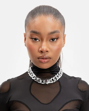 RARE ROMANCE CHUNKY CUBAN LINK NECKLACE SILVER